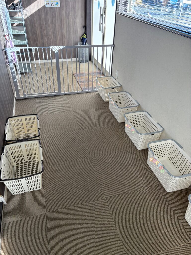 玄関です!カゴの中に自分の荷物を入れて、自分で持ち物管理を頑張ります(*•̀ᴗ•́*)و